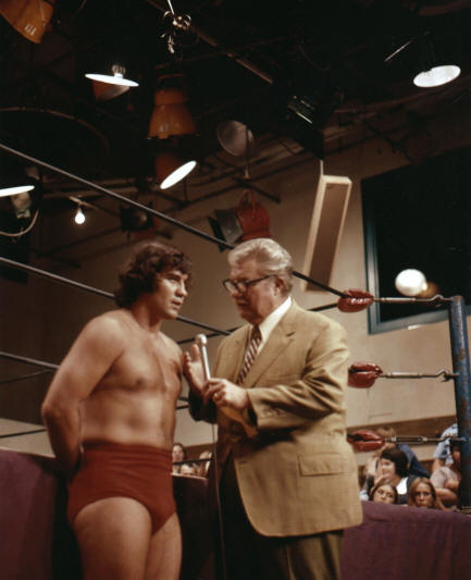 studio matches. (R) Ole Anderson prepares for his match in the ring at