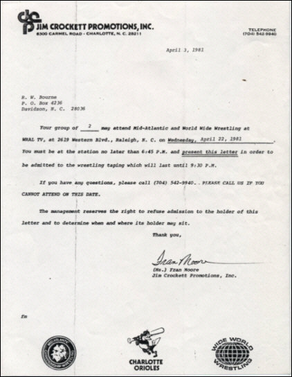 He (Tommy Bland) and his father also came to see “Mid Atlantic Championship Wrestling” which was taped in Studio A at the time. LINK