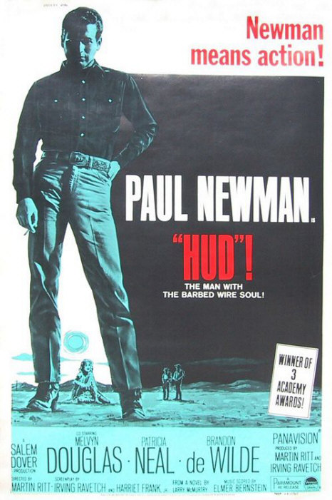 OTHER NOTES Originally released theatrically on May 29, 1963. Filmed on location in Texas. Paul Newman was nominated for both an Academy Award and a Golden Globe for Best Actor for his role as Hud. The ad campaigns for the film upon its release announced: "Paul Newman is HUD." Paul Newman had been so frustrated by the censor's reactions to several of his previous edgy films that he chose the most unsavory story and character he could find, which was Hud, the amoral loner and seducer in Larry McMurtry's HORSEMAN, PASS BY.