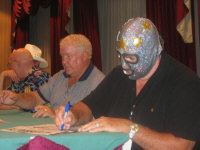 Brisco; Peggy Lathan and Ole Anderson; Eddie Cheslock and Dick Bourne; Kaitlyn Hall, Masked Superstar (Bill Eadie), and Steve Hall; Dick Bourne