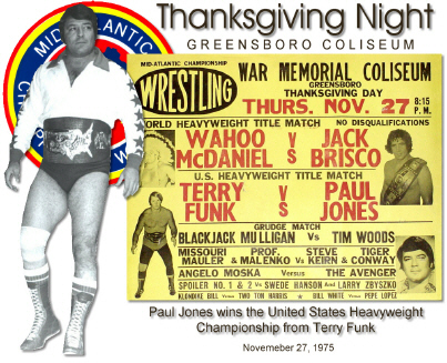 07/06 Charlotte, NC Jimmy Valiant beat Paul Jones via pinfall