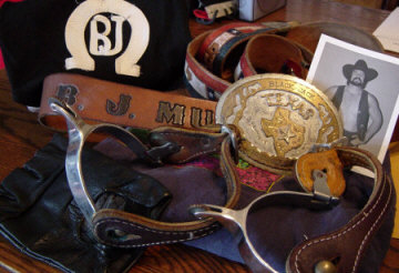 Boots, belt buckles, gloves, spurs, cowboy hats, blood