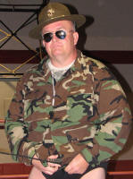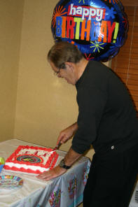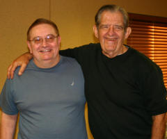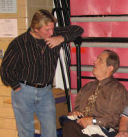 After the show, we had a surprise waiting for Johnny back at our hotel, a surprise birthday party that Peggy Lathan and I had been planning for months, with the assistance of Jim Nelson and his wife Tammy. Johnny was really caught by surprise, and enjoyed cutting into his special Mid-Atlantic Wrestling birthday cake! It was a really fun time, and we were all up until about 2:00 AM listening to the boys tell stories from the old days, and looking at old photos. I even talked Johnny into singing a full verse of "Turn Out The Lights, The Party's Over" with me. This was caught on video tape, and may or may not ever see the light of day here! Sunday morning Johnny and I continued to clown around with the video camera, doing our impromptu commercial for Holiday Inn Express in the parking lot. It was a very special weekend for all of us. Mike Cline got to ride with Johnny and Peggy and Clay up from Charlotte; David and I were joined by Carroll Hall on the interview. The Rossers drove in from Lynchburg. We all got some quality time with one of the greatest names in wrestling history, and it is a weekend we'll never forget. -Dick Bourne