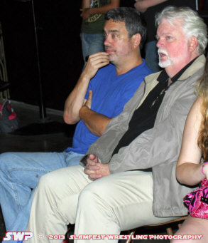 Front Row Section D Reunion Bruce Mitchell (Pro Wrestling Torch) and John Hitchcock (Parts Unknown comic book store in Greensboro) at the 2013 Weaver Cup Finals